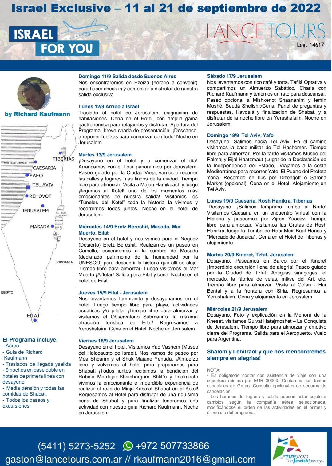 Súmate y participa de nuestros increíbles viajes grupales a Israel, dirigidos y guiados por Richard Kaufmann y su equipo.